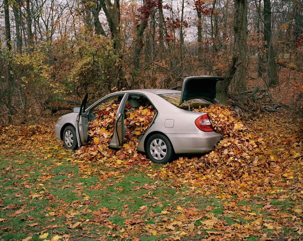 When my father died in 2007 I inherited his 2003 Toyota Camry. I held onto it for two years, even though it made no sense in New York City. Before finally letting it go, I took it to the park where I had taped my last video with him, filled it with leaves, and photographed it.