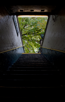 This project celebrates the place where the worlds above ground and below meet. I love the perfect trapezoidal geometry of these portals, how they share the same basic structure yet vary in detail from station to station, and how they frame resplendent bits of sky, landscape and architecture amid the station's grunge.